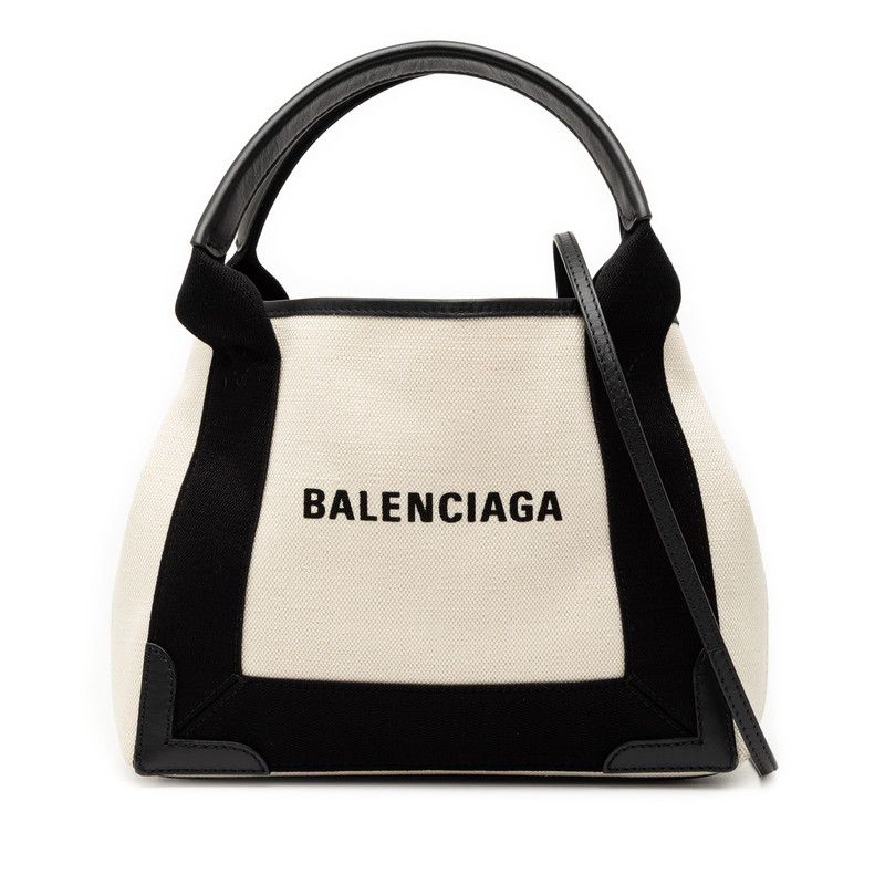 Balenciaga Navy Cabas XS Shoulder Bag 2-Way White Black Leather