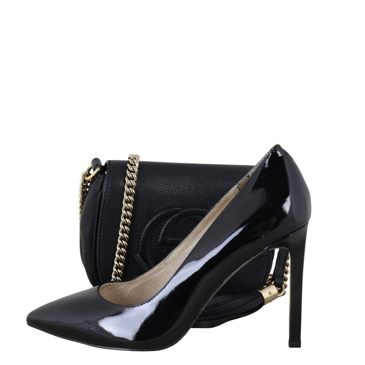 The Gucci Soho Chain Crossbody is a compact yet statement-making essential, crafted from grained calfskin leather with the iconic stitched GG and finished with a gleaming chain strap for effortless everyday elegance.