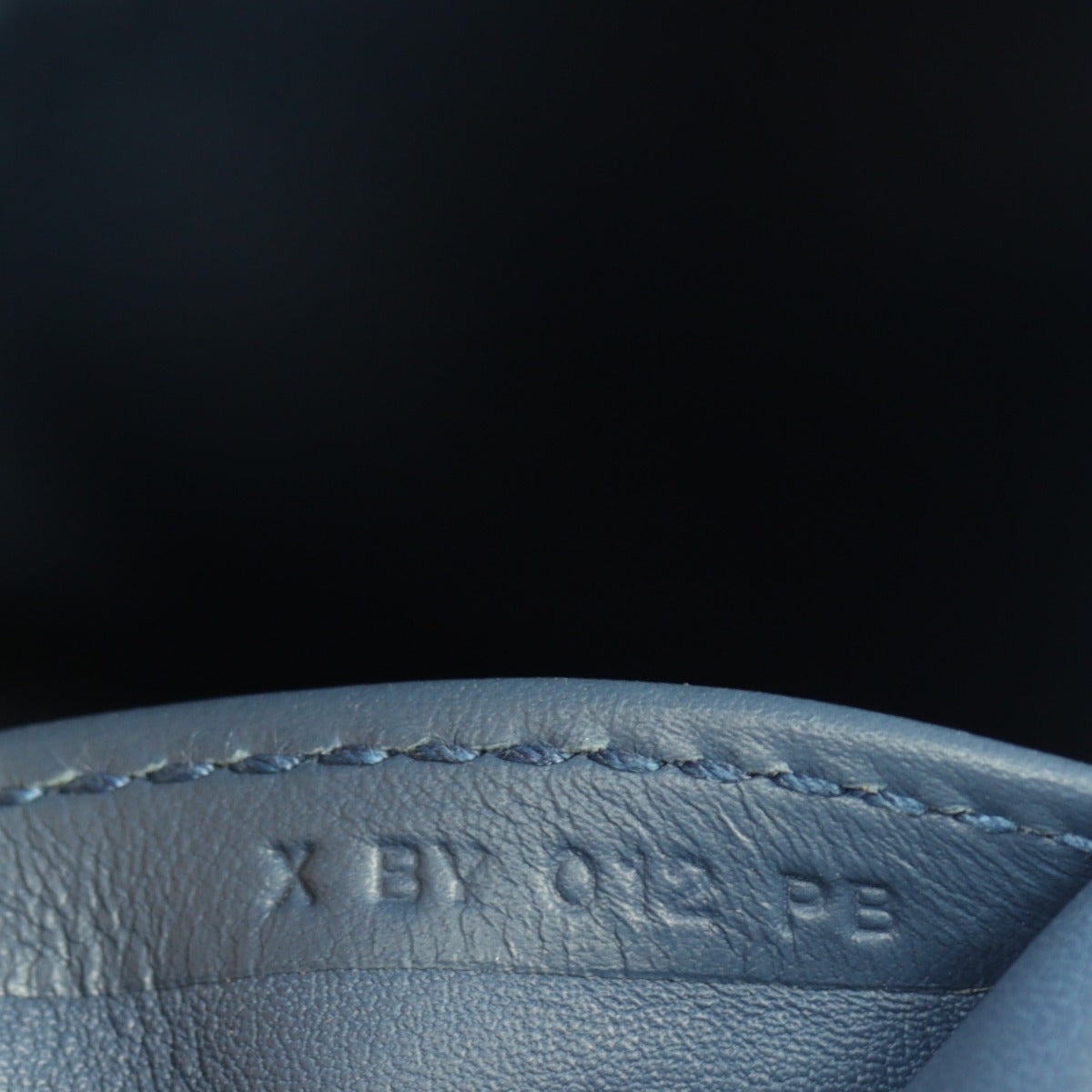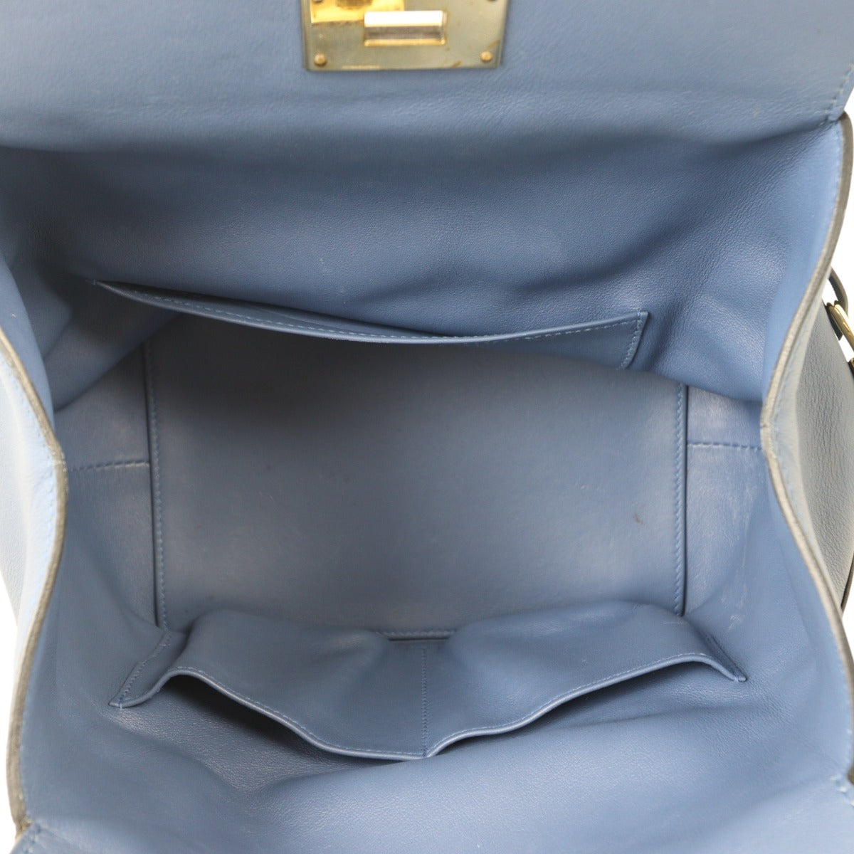 Features: Dark blue swift leather exterior; double rolled handles; detachable flat web shoulder strap; pale gold tone hardware; padlock and 2 x keys in detachable clochette; frame top with twist closure to main compartment; tonal leather lined interior with 3 x slip pockets.