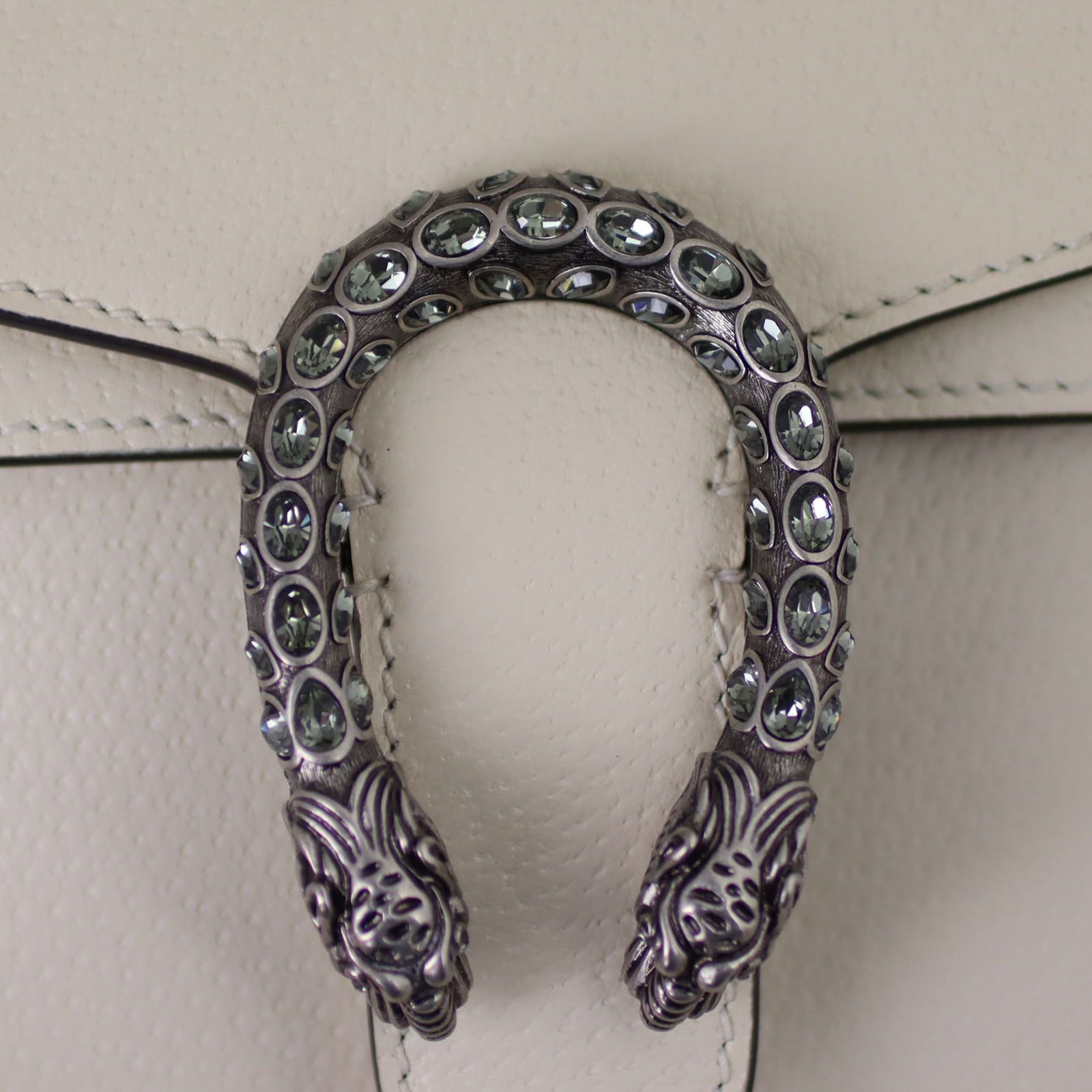 Uber chic and on-trend, the structured Gucci Dionysus Shoulder Bag is an absolute showstopper. The eye is instantly drawn to the iconic tiger head spur encrusted with Swarovski crystals - a unique detail referencing the Greek god Dionysus, said to have crossed the river Tigris on a tiger sent to him by Zeus. This bag is an ultimate statement piece and will instantly add a dose of Gucci luxe to any day or evening adventure.