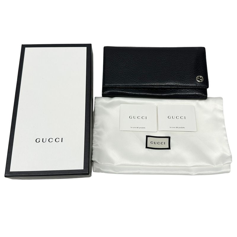 Gucci Wallet Interlocking Wallet Leather Black Simple